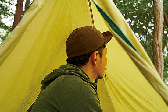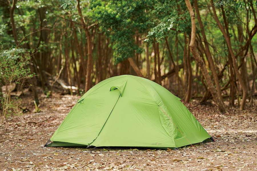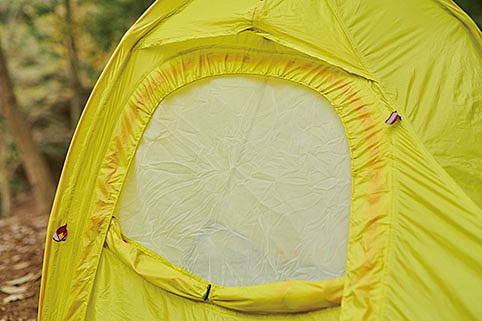 テントではなく、こちらのモデルは「自立式ドーム型ツエルト」という位置付け。生地に防水性を持たせるポリウレタンコーティングが施されているので、一般的なダブルウォールテントや防水透湿素材を使ったシングルウォールテントより換気に気を配り、結露や酸欠に注意したい。今年からポールの素材が変わり、従来品よりも軽くなった。