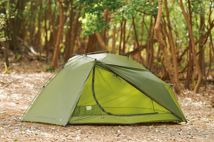 一本のポールで空間を広げて、さらに両サイドをペグダウンすることで立ち上がる非自立式のシングルウォール。テントとツエルトの間を狙って開発されただけあって、その重量は770gしかなく、他のシングルウォールと比べても超軽量。しかも、前室まで備わっているので利便性も高い。かゆいところに手が届く、計算し尽くされたテントといえる。