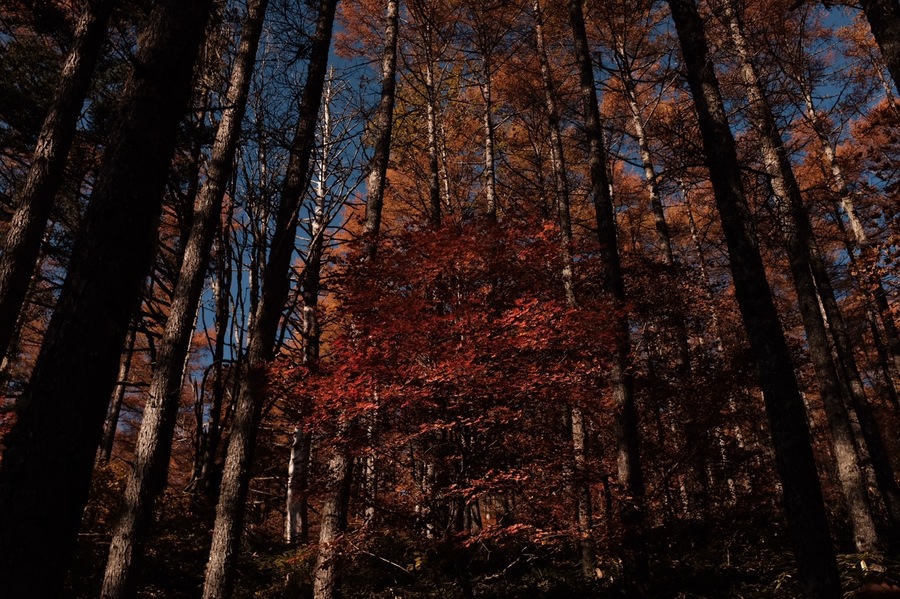 僕はといえば体力の違いを序盤で思い知らされたので安心してうしろから背中を見送りマイペースモード全開で疲れたら立ち止まり、気になるものがあれば立ち止まり、蜘蛛の巣があれば立ち止まり、と完全に観光登山にシフトチェンジし、森の空気を精いっぱい身体中で感じておりました。