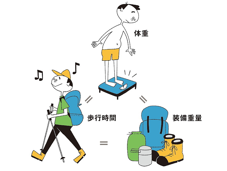 「体重/装備重量/歩行時間」を総合的に減らそうとすると…