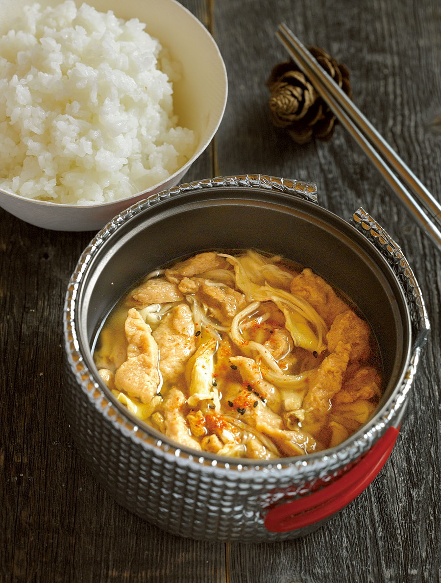 1.クッカーに乾燥食材を入れて、お湯250㏄を加えてひとまぜ。コジーに入れて6分保温する。