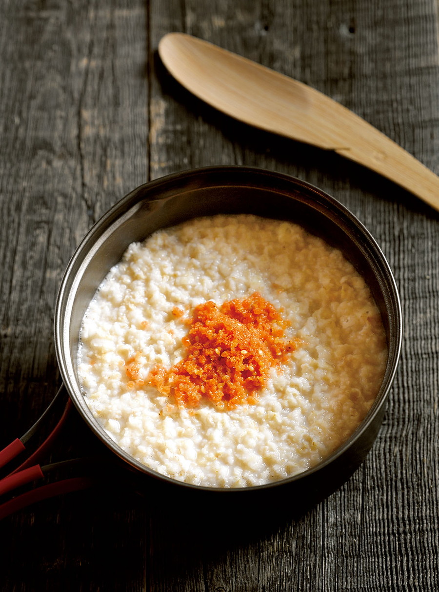 ふりかけやドライフルーツなどの味変アイテムを携行すれば、気分で味を変えられる。疲労時は甘い粉飲料でライスプディング風に。