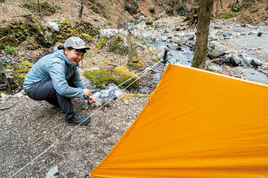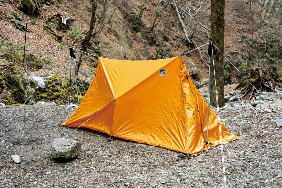ツエルトや非自立式の簡易テントは、設営の仕方によって居住性が大きく変わる。設営の技術や、設営に適した条件はなにかなどの知識がないと快適に使うことはできない。今回は問題なかったが、悪天候時にはさらに差が出るポイントなので、その対処法も知っておく必要がある。