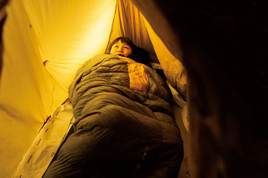 しかしポールの位置が悪い。森山が改良を加えると、内部空間が広く出入りもしやすくなった。中に入ってみると、ひとりなら十分といえる空間。「これは落ち着けます」とニノミヤも満足。安心して眠りについた。