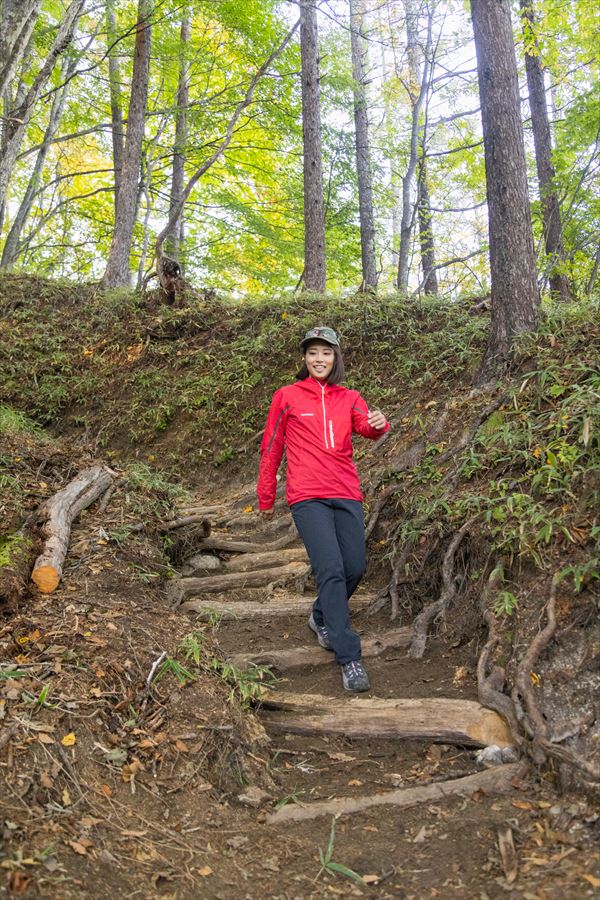 整備が必要な場所はたくさんあるが、状態や参加人数によって所要時間が変わるので、どこを直すのが良いか見極める必要がある。今回は合計10人、半日で整備が終えられる場所ということで、ここを補修。整備前にかほさんが歩いてみたものの、やはり「段差が急で歩きにくい……」という感想が。