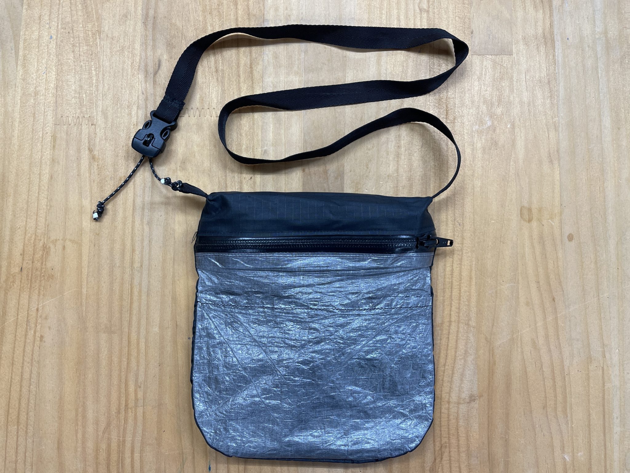 そしてネタ探しのために山道具の整理整頓をしていたら初期にMYOGったサコッシュが出てきて、作った当時は参考にしたサコッシュとの出来の違いに愕然としたけど、改めて見てみるとそんなに悪くないかも……と、このたびバッグインシートを入れて使うサコッシュとして復活しました。
