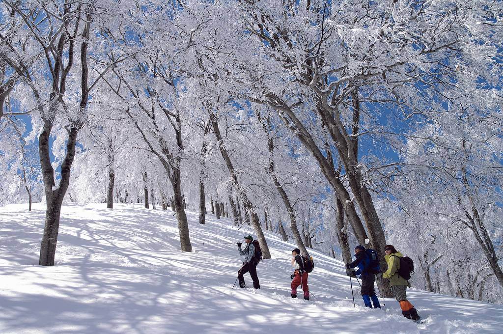 また、平均積雪量が4mと日本でも有数の豪雪地であるなべくらの雪を使って、期間中は試乗用コースを利用したガイド付きスノーシューツアーも催行。静寂な森歩きを楽しむ「ブナコース」と、見渡す限りの雪原と眺望が自慢の「大雪原コース」です。