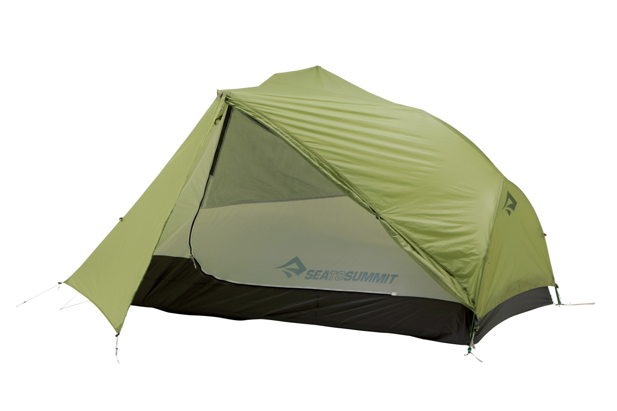 シングルウォールテントでありながら、ブーツや調理道具などを広げることができる実用的な前室を備えている
