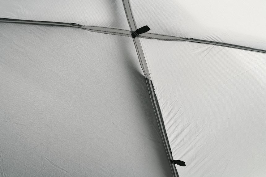 ▲超高強力なイザナステープを縫い込むことでテントの剛性を大きく向上させた