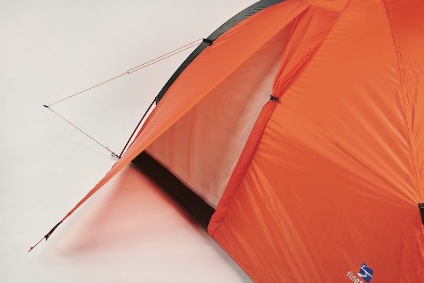 MSRでは、居住性を無視してテントを設計することはありません。レインフライの出入口を赤く配色することで、ひと目でどこが前室かわかるようになっており、悪天候下でも出入口を見分けることができるのも特徴です。レイン フライには標準的な処理と比較して約3倍長持ちするコーティング技術「エクストリームシールド」を採用しました。さらに縫製をより正確にすることでシームテープをなくし、経年劣化による剥離などのトラブルも解消することに成功しています。(モチヅキ/西脇)