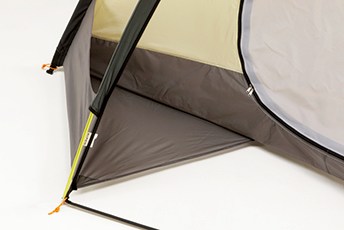 ▲写真のように前室の一部はグラウンドシートが敷かれており、濡れたレインウエアなどのなるべく汚したくない装備を置いておくスペースとして活用できるようになっている