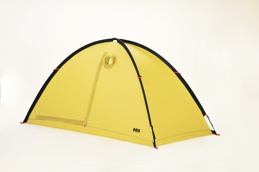 「ハイレヴォ2」は強度を保ちつつ軽量化のために生地のデニール数にこだわったダブルウォールテントです。ポールはユナン社製でもっとも細い7.5㎜径を採用していますが「検張で1,000張以上張っても折れることなく、工場責任者を驚かした」という逸話があり、これにより耐風性を維持しました。(ヘリテイジ/野中)