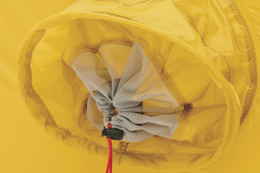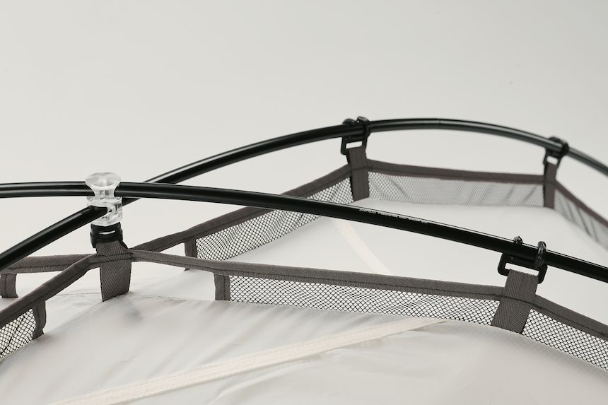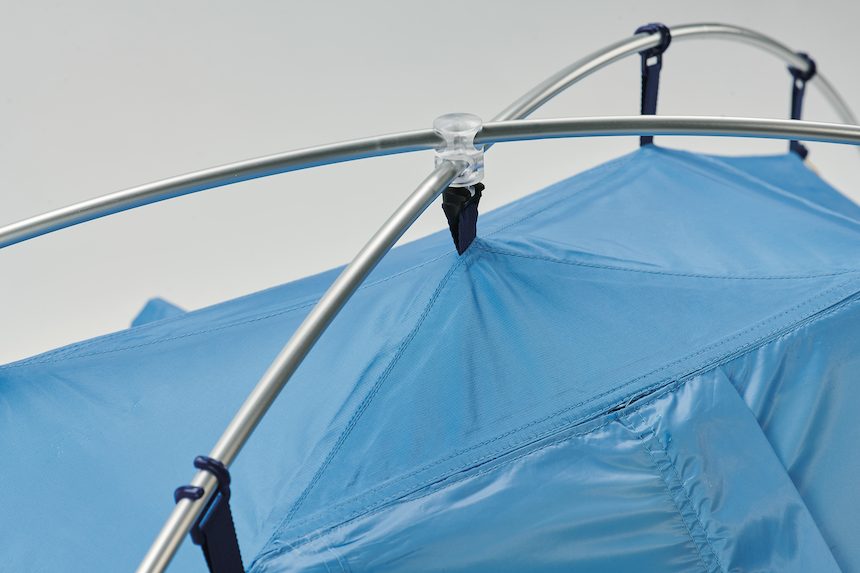 ▲上部と下部で異なる太さのテントポールを使用することで上部を曲がりにくくし、良好なヘッドクリアランスを確保した