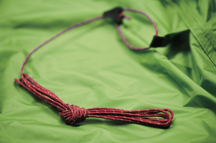 ▲中芯にダイニーマ、外皮にリフレクターを織り込んだガイラインは、軽く強度に優れた特注品