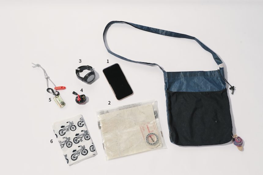 山道具として定着したハイキングサコッシュの元祖。自転車用が発想の起点になっていて、軽さとシンプルさが魅力。行動中はナビゲーションに必要なものしか入れません。