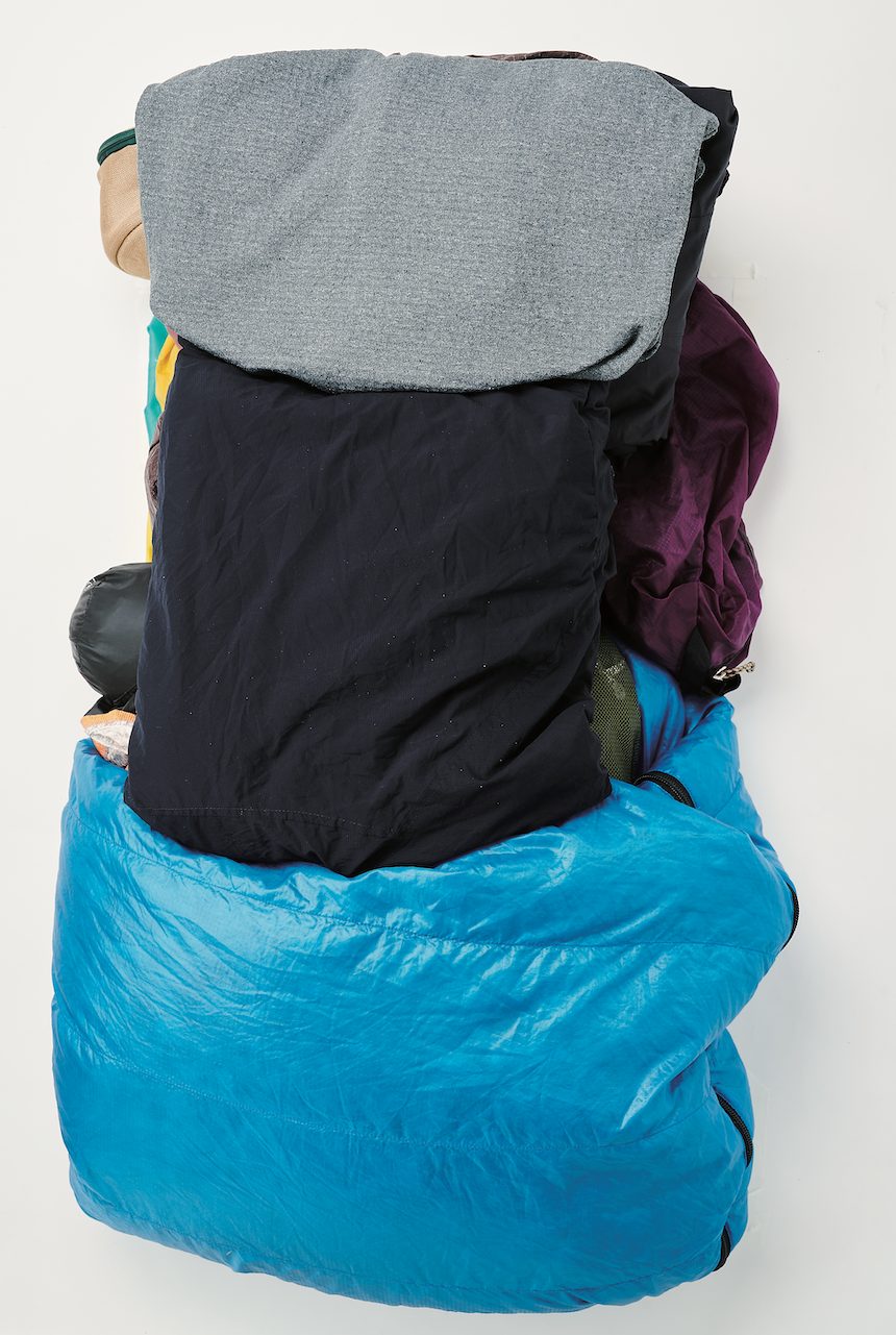 • 【下部】スリーピングバッグはパックのいちばん下にそのまま入れる。上部の荷物の重みでコンプレッションされる