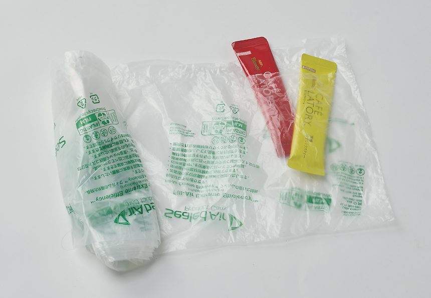 ▲宅配便の梱包材を活用した小分けのビニール袋。小物を分けて入れたり、ちょっとしたゴミ袋として活用
