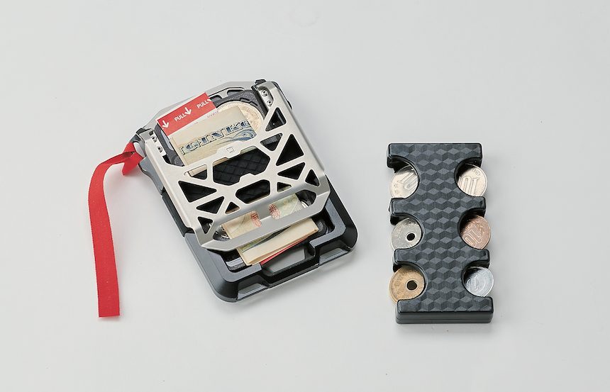 ▲マネークリップとコインケース。マネークリップはカードとコインも収納できる仕様。コインケースは1,000円分のコインを収納できる