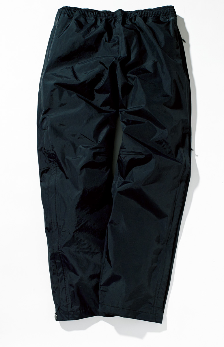漁網をリサイクルしたナイロン地を採用したシェルパンツ。右腿に止水ファスナーポケットが付く。靴を履いたまま脱ぎ着が可能で、3シーズンをとおして幅広く活躍する。