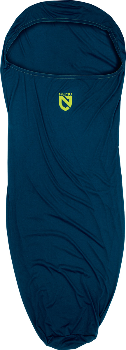ニーモ独自のスリーピングバッグ形状、スプーンシェイプに合わせた寝袋ライナー。ブルーサイン認証を得たポリジン加工の抗菌防臭機能で、いやな臭いを抑制。