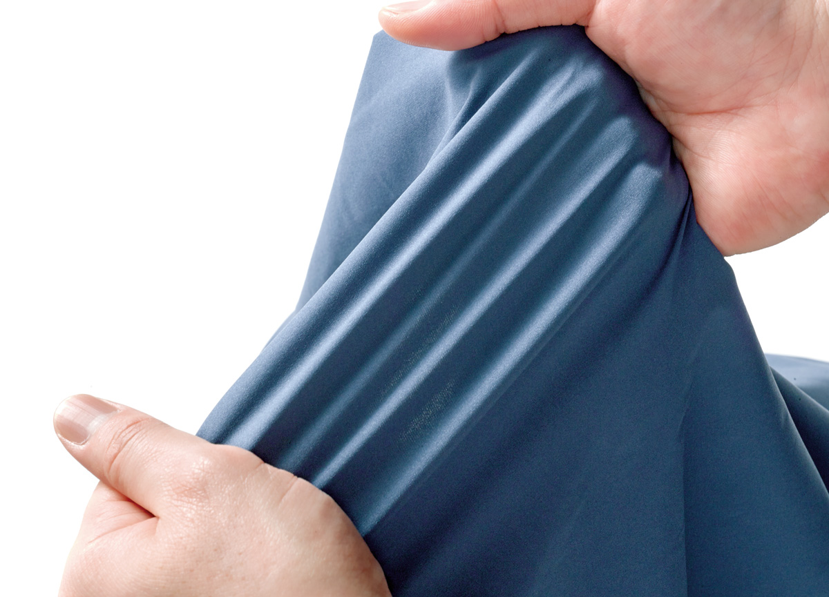▲しなやかでストレッチ性に優れ、40デニールの厚みで耐久性も合わせ持つ。