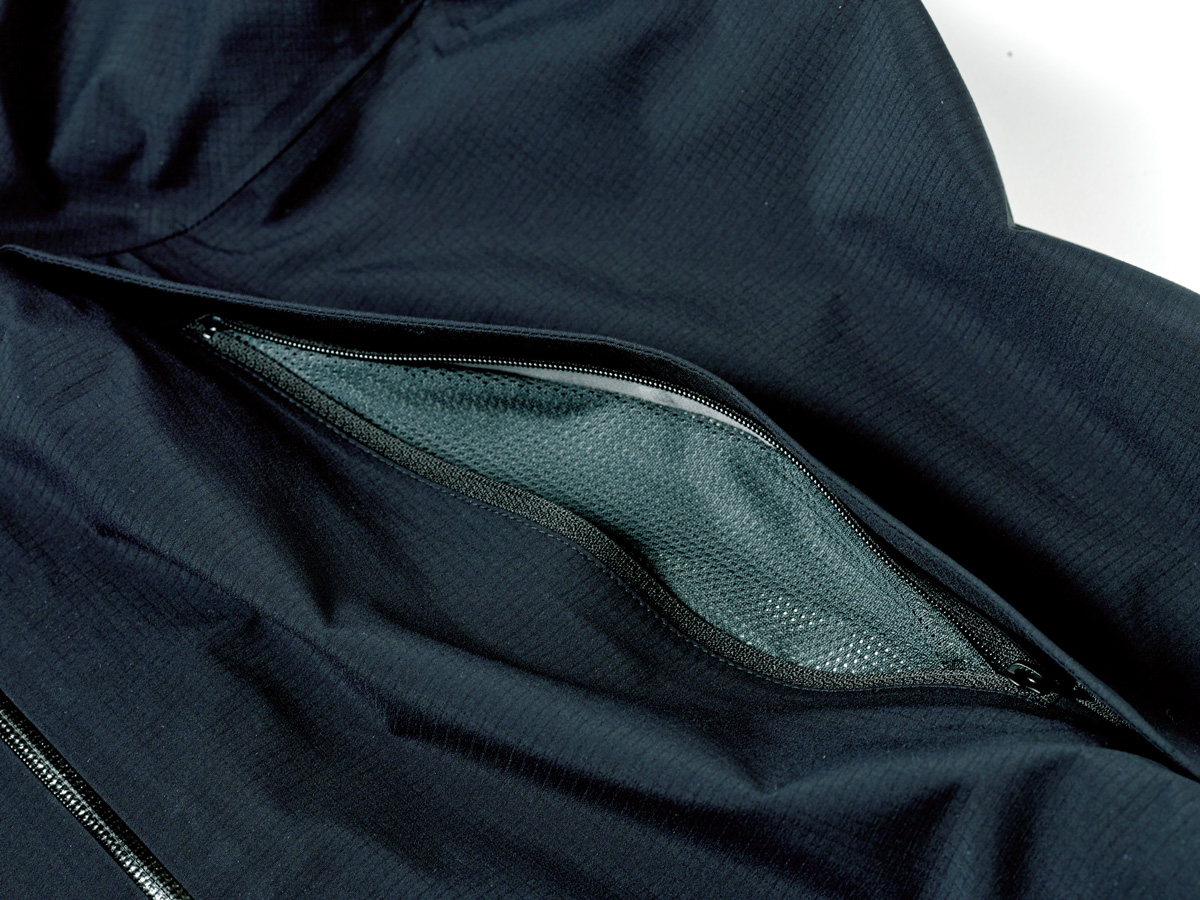 生地だけでなく、カッティングやシルエット、細かなギミックにもこだわりがある。ゆったりと着られるシルエットは、動くたびにポンプのようにムレを排出する作用が期待でき、大きなハンドポケットは内側にメッシュ地を配しベンチレーションとしても機能する。両モデルとも環境への負荷に配慮し、リサイクル素材を使用した「グリーンマテリアル」製品だ。