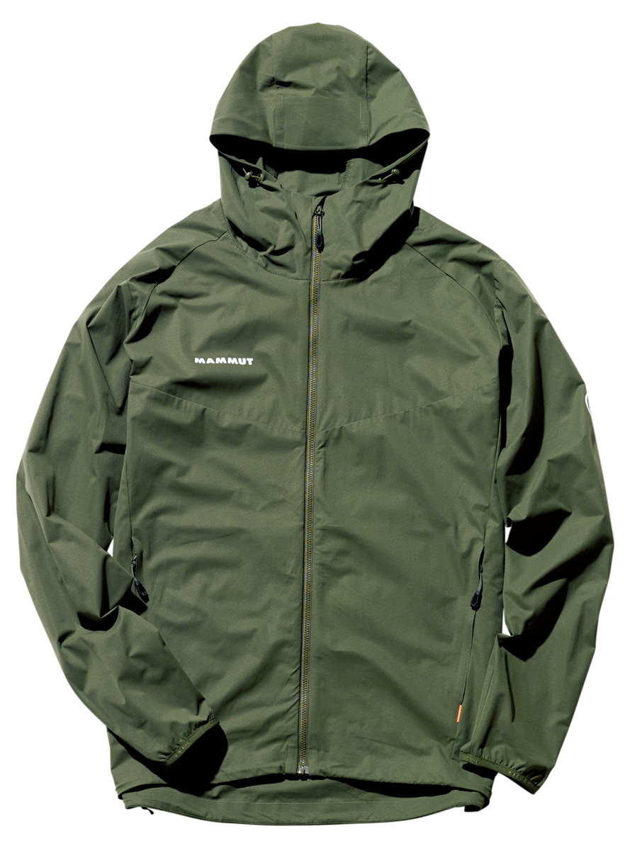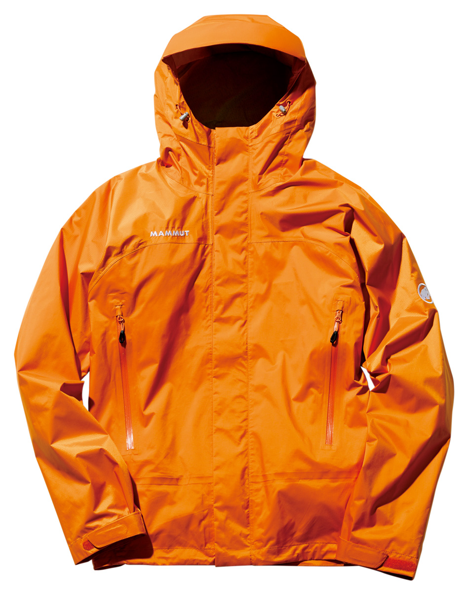 マムートがラインナップする全コレクションで、最軽量、最小の収納サイズを実現した3層構造のハードシェル。軽さを追求してフードや裾のドローコード、袖のベルクロクロージャーは省略しつつ、伸縮素材で頭や体にフィットする設計。腕の動かしやすさを考えた立体裁断のアームは、首元から手首にかけて雨が当たる外側の縫製箇所をなくし、耐水性を向上させている。