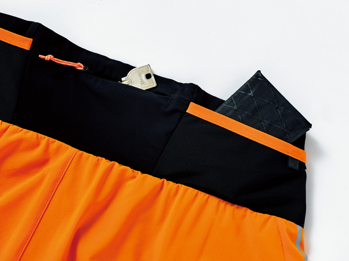 吸水速乾性と抜群のストレッチ性を備えるインナータイツを組み合わせた、長距離ランニング向けの軽量ショーツ。インナータイツには絶妙な着圧があり、着地時に生じる大腿部のブレを抑える軽いサポート効果がある。アウターショーツともに小型ポケットを適所に備え、スマートフォンやサイフなどを収納しやすい仕様。ウエストはドローコードでフィット感を調整できる。