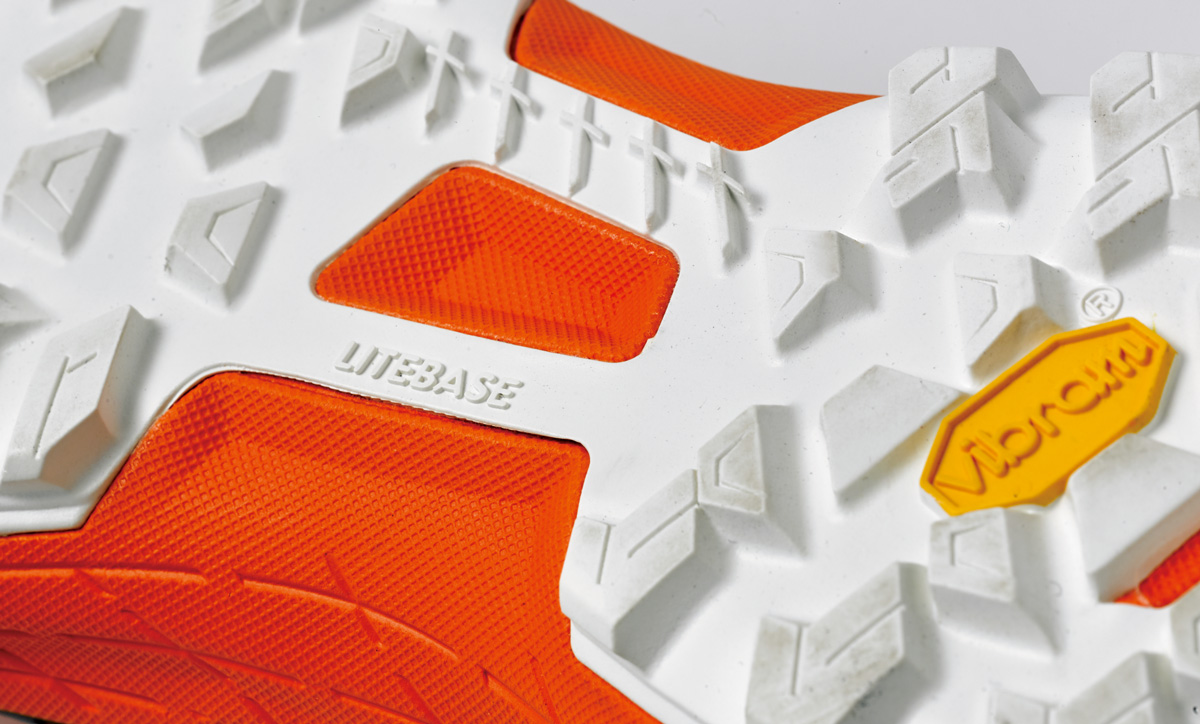 ▲ヴィブラムライトベースは限りなくアウトソールを薄くした技術。重量削減に貢献している。
