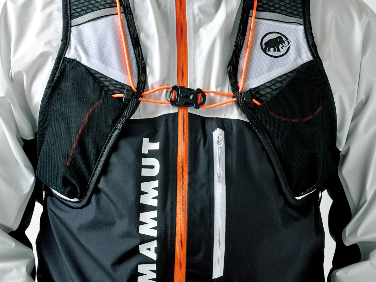 ▲ソフトフラスクが入る大型チェストポケットも搭載する。