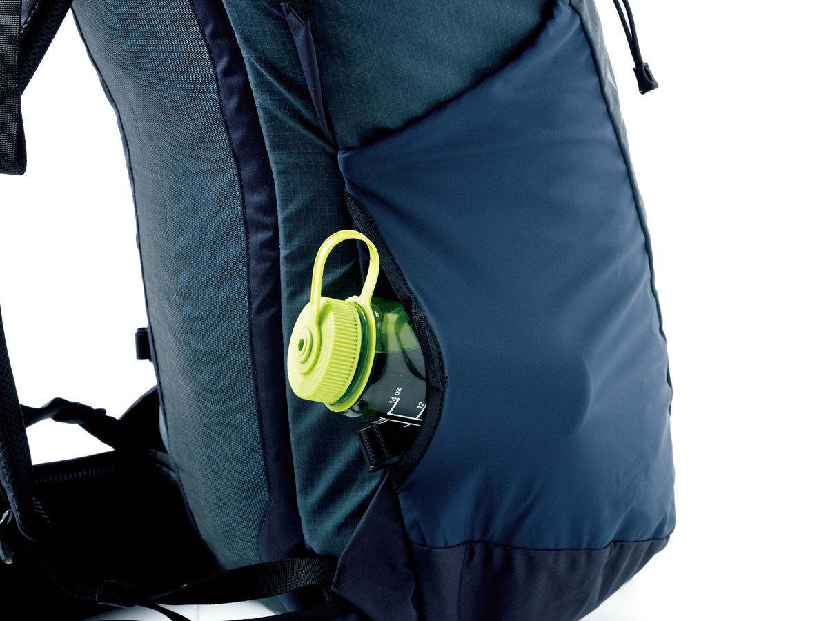 カリマーといえばリッジ。背面やウエストの肉厚なパッドが特徴で、ソフトな背負い心地で人気だ。内外どちらからもアクセスできる雨蓋、ジャケットなどを挟み込めるフロントのオープンポケット、両サイドのファスナー付きポケットなど、収納上手で使いやすい。