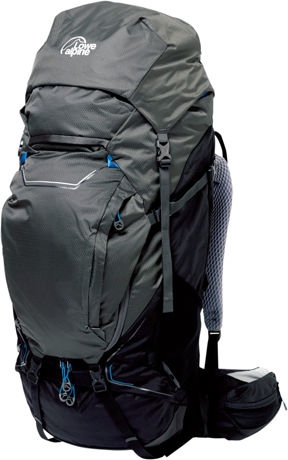 最大85ℓまで容量を拡大できるフラッグシップ。重たい荷物を腰でもしっかり支えられるように、極太のフレームがウエストまで回り込んでいる。背面パッドと一体になったショルダーハーネスはレールに沿って上下する仕組みで、簡単に背面長を調節できます。