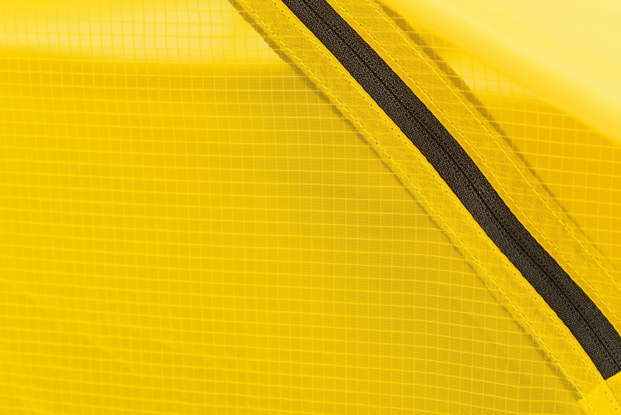 格子のラインが目立つオズモ素材。一般的なフライシートより4倍も撥水性が保たれる