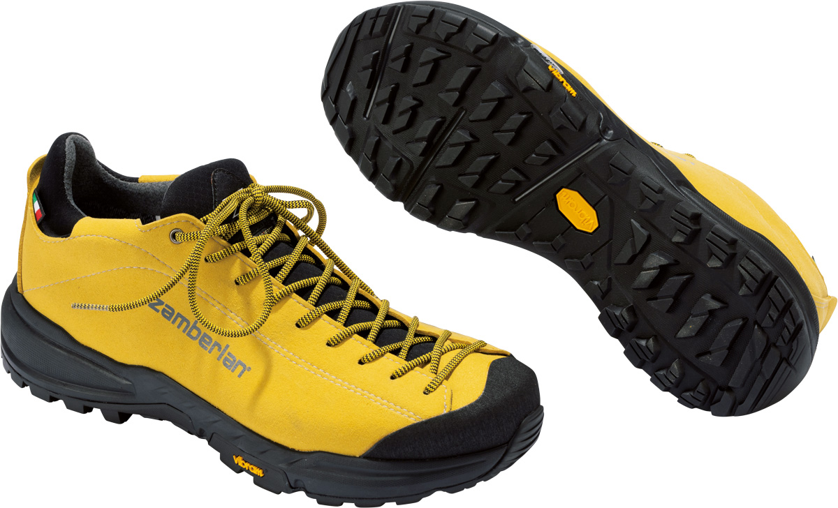 きれいなイエローが印象的なスマートなフォルム。つま先の先端ギリギリまでにつけられたシューレースは、足の形状にぴったりと合うようなフィット感をもたらし、滑りやすい難路で真価を発揮する。ミッドソールは分厚く、衝撃吸収性にも優れています。