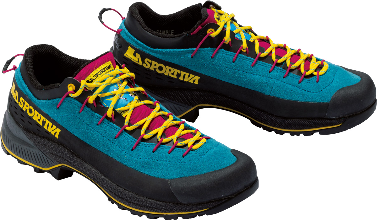 軽量で耐摩耗性が高いアッパーやアウトソールなど高度な機能性を持ちつつも、山で使うシューズとは思えないスタイリッシュさが人気。アプローチシューズとしてはつま先が少し反り上がり気味のために前方へ蹴り出しやすく、平坦な場所でも歩きやすい。
