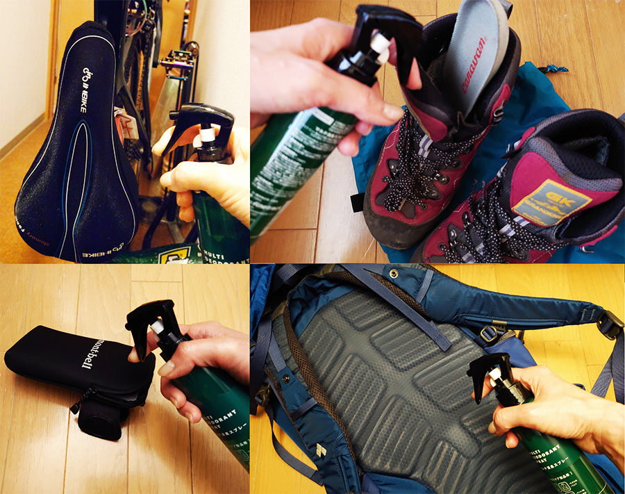 枕カバーに3プッシュ。少し置いてみたら、びっくり! ニオイを感じない! しかも、マルチ消臭スプレーの天然成分の香りがほのかに付いていい感じ。この実験結果から、ニオイが気になる登山道具やサイクリング用具にいそいそとスプレーしまくりました。