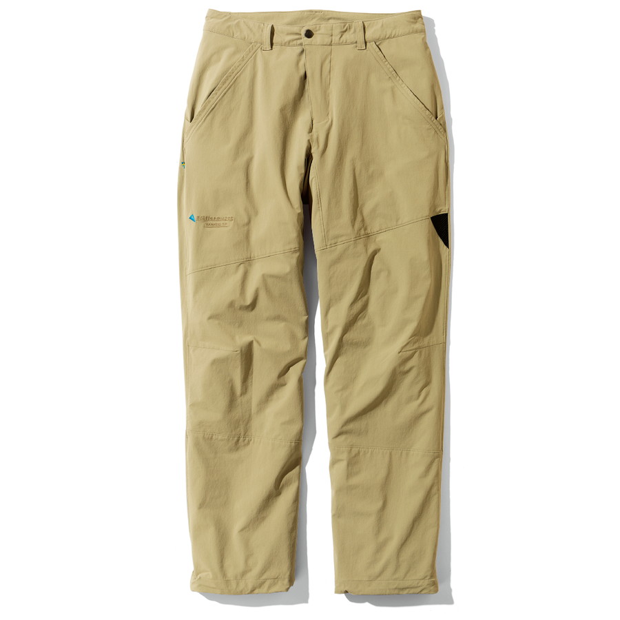 特殊な撥水加工を施したソフトシェルをメインに、岩などと摩擦が多いヒザやヒップ部分には耐摩耗性の高い生地を配置。立体裁断やガセット構造の相乗効果で非常に動きやすく、使用場面を選ばないマルチパンツに仕上がった。