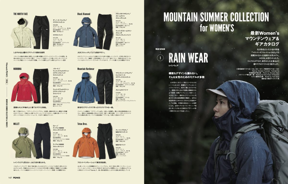 現在発売中の『PEAKS 2023年6月号 No.160』では、第2特集にドーンとWomen’s企画を展開中!この春発売された大注目の女性ウエア&ギアカタログ、本気登山女子3名による“この夏行くべき”ルートガイド紹介の2部構成となっています。