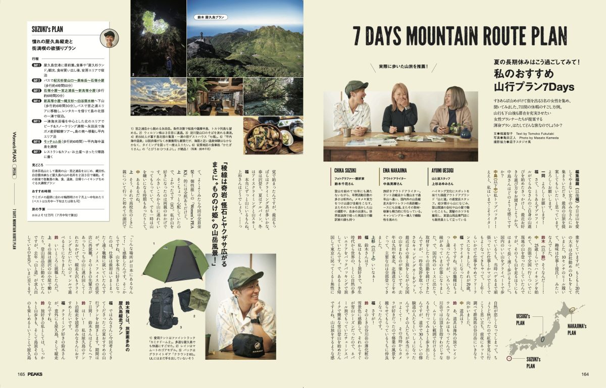 後半では、長期縦走から山岳長距離レースまで男性顔負けのタフさで山を楽しむ3名の女性が登場し、女性読者にこの夏ぜひ登ってほしい山旅を座談会形式でプレゼン。梅雨入りしたばかりですが、明けるのが待ち遠しくなること間違いなしです!