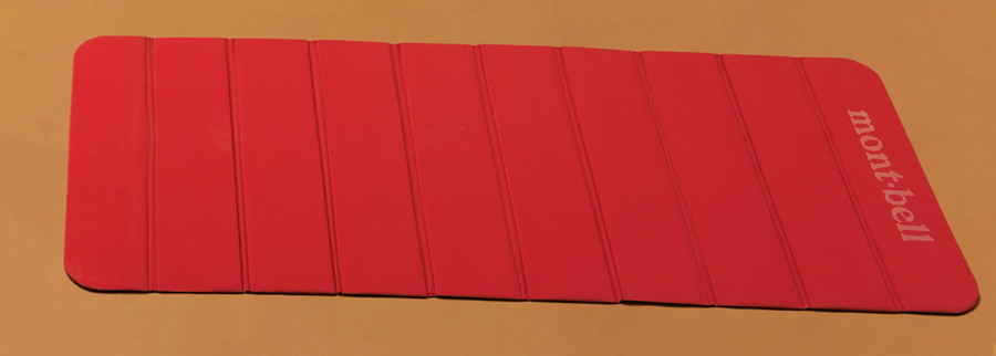 表裏で2種の素材を組み合わせたユニークな製品。赤い表面は比較的柔らかいポリエチレンのフォーム材、裏面は板状で硬いボード材を使い、地面の凹凸を緩和する。岩場などのハードな環境では、このパッドを他のマットと併用すると寝心地がよくなる。