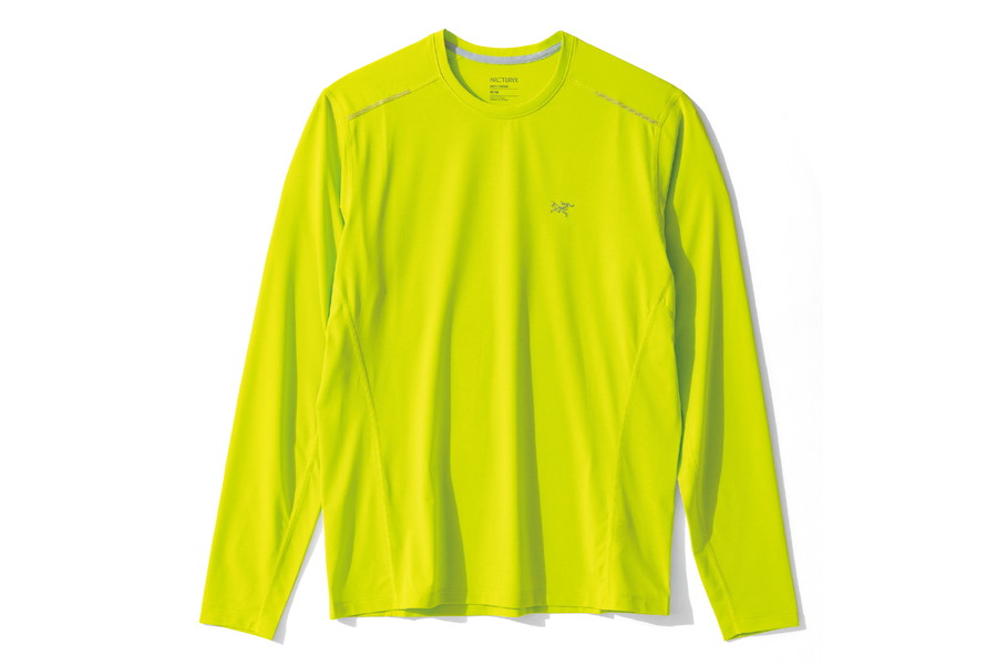 トレイルランナー向けの速乾ベースレイヤー。非常に軽量に作られ生地は薄手ながら、日射にさらされる環境でも役立つ高い紫外線プロテクション機能も備わる。山で映えるカラーも魅力。