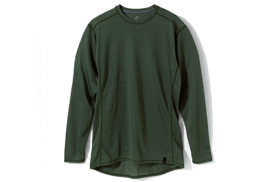 高品質なメリノウール100%の中厚手モデル。肩の縫い目をオフセットしパックとのあたりも柔らか。同社はメリノ種の羊を飼育する農場と長期契約し、飼育環境や品質に配慮した製品作りを始めた企業として知られる。
