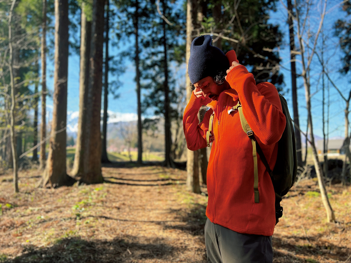「ベースレイヤーの上になにを着るのか、これまでずっと試行錯誤してきました。パワーフーディやアウトライトフーディを着たり、気温が低ければ薄手の綿物を着たりしていましたが、この冬はこれしか着ませんでした。アクティビティのミドルレイヤーとしては、そのぐらい優秀です」