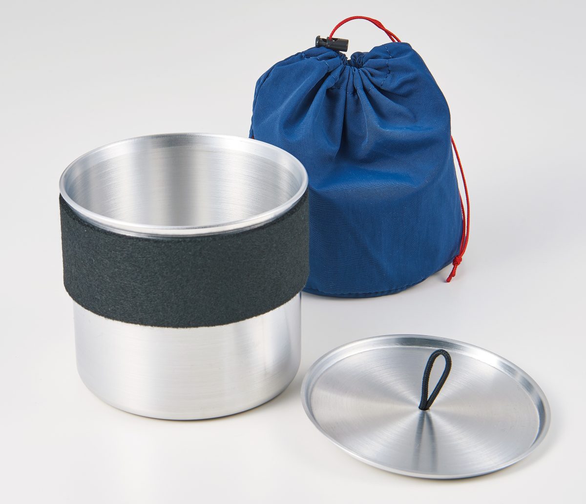 空き缶クッカーをベースに、職人の手によるヘラ絞り工法で製作される、ハンドルレスクッカーブームの火付け役。オプションでシリコンバンドやポットリフター、ウッドノブ、カラバリ豊富なサックなどを用意している。