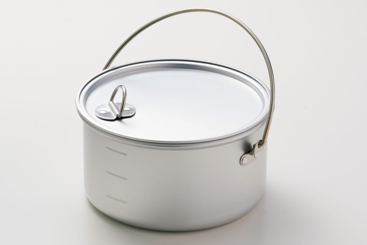ソロクッカーにはめずらしいツル式ハンドルが備わり大鍋にも見えるが直径12.2㎝の小鍋。内側にコーティングはないが、熱伝導率のよいアルミ製なのでコゲが発生しにくく、ストーブの熱を鍋底全体で受ける平型なので炊飯が得意。