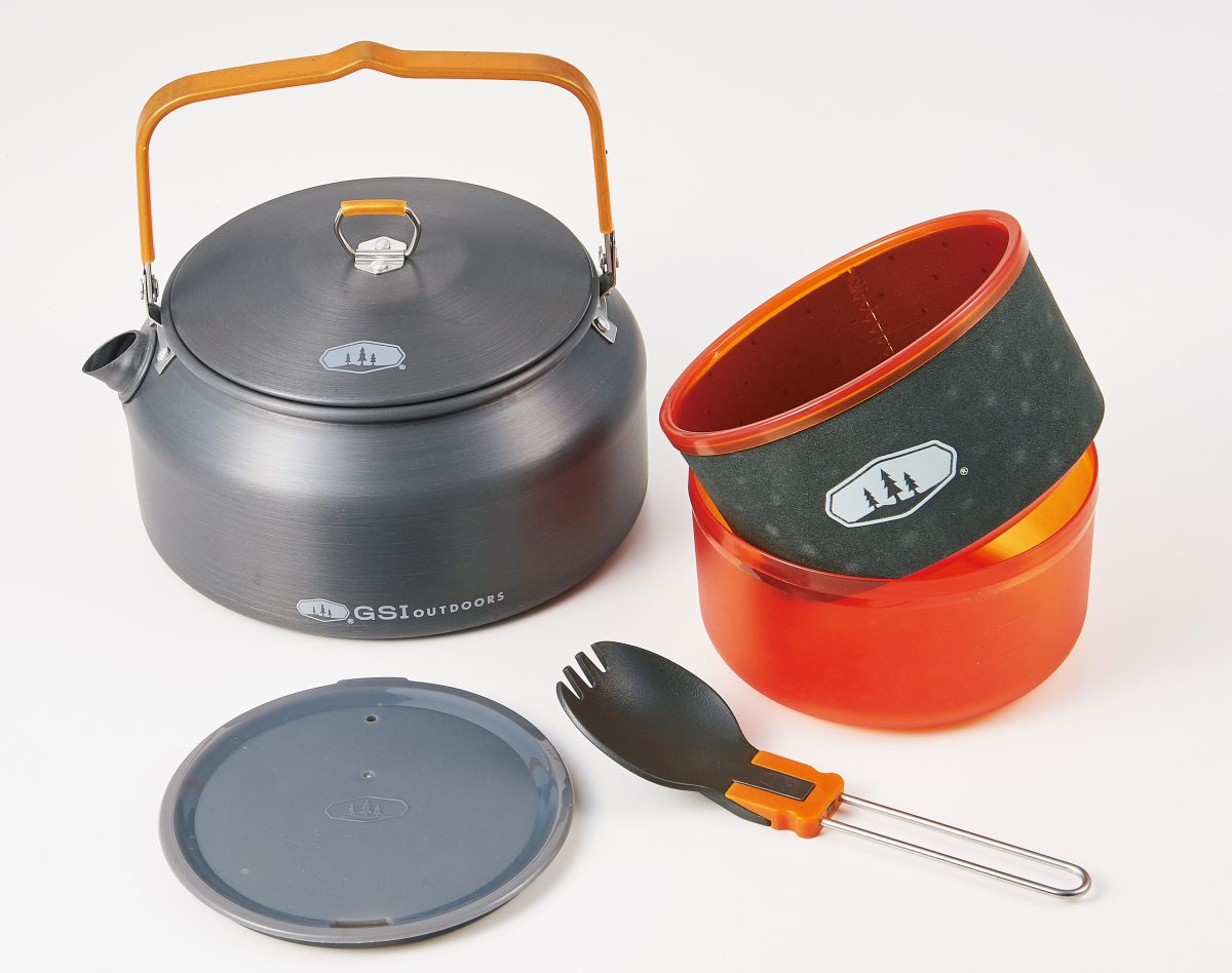 フリーズドライ食品を美味しく食べたい。そんなバックパッカーの希望を叶える、ケトルと保温機能のあるボウルとマグ、スポークのセット。湯沸かししかしないのなら、広い底面で熱を逃がさず、こぼさず湯を注げるケトルが一番!道具好きは、ぜひ!