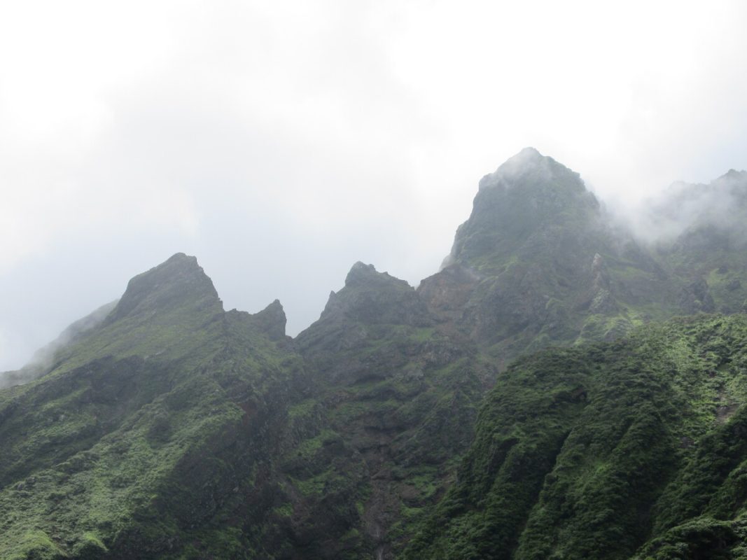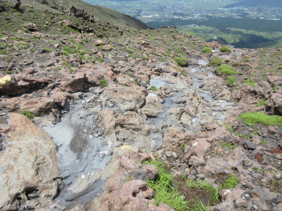 中岳山頂、標高1,506m。西側を見下ろすと、ぽっかりと口を開けた大地が真っ白な煙を吐き出している。第一火口だ。眺める側も開いた口がふさがらない。その左には茶色と黄色が混ざったような水を浮かべる第二火口が並ぶ。さらに南側に向かっていくつもの火口が点在する。荘厳な光景に目を奪われ、しばらくその場を動くことができなかった。