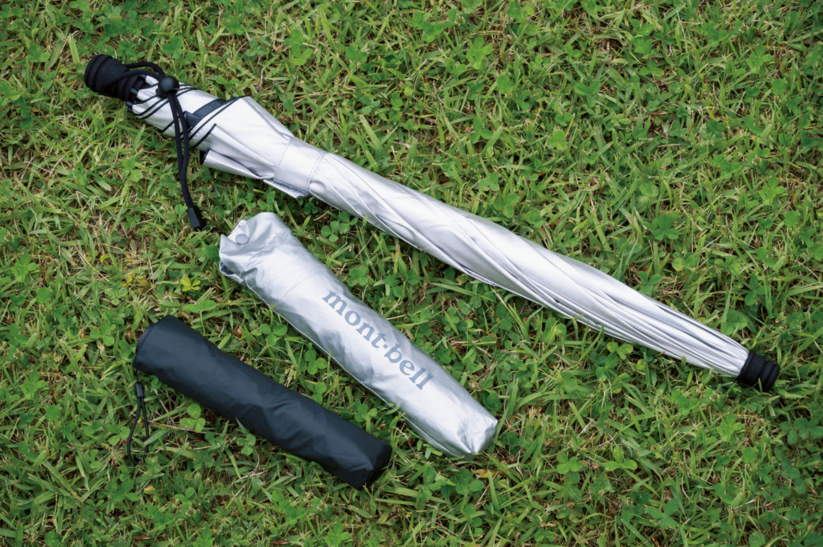 標高が1,000m上がるごとに紫外線量は約10%も上がるそうで、山でも日傘が市民権を得始めているのは自然なことだろう。樹林帯ではもちろん、無風時であれば日陰のない稜線歩きや富士登山でも活躍する。ちなみに、環境省の検証実験によると、遮熱日傘を使って強い陽射しから体を守ると、約17%も発汗量が減ることがわかっている。