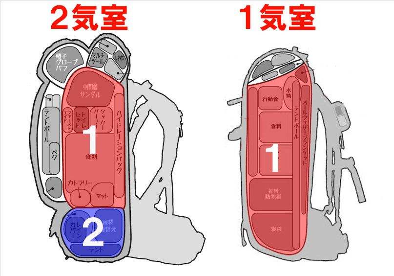 結果、2気室パックも仕切りを外して1気室にして使うことがほとんど。こんなのは重量増につながるだけの余計な機能なんじゃないかと、否定的だったわけです。