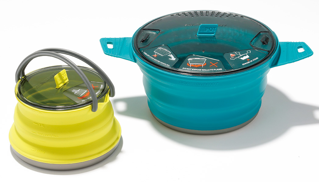 このサイズは選択肢が非常に明確だ。仲間と鍋物をつついたり、麺類を楽しむならチタンの軽さに軍配が上がる。のんびり食事を楽しむ山行ならばアルミのフルセットを。合わせるバーナーは安定感の高い分離型がマスト。